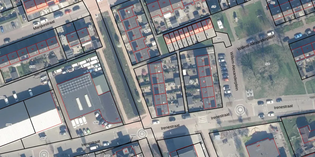 Irenestraat 21 is gelegen op kadastraal perceel AMS02D130. Deze kadastrale aanduiding is uniek en wordt gebruikt door het Kadaster om eigendomsrechten en andere zakelijke rechten vast te leggen. Het perceel maakt onderdeel uit van de kadastrale gemeente Groot-Ammers.