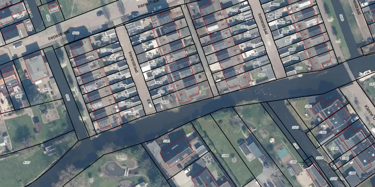 Irenestraat 38 is gelegen op kadastraal perceel AMS02A5630. Deze kadastrale aanduiding is uniek en wordt gebruikt door het Kadaster om eigendomsrechten en andere zakelijke rechten vast te leggen. Het perceel maakt onderdeel uit van de kadastrale gemeente Groot-Ammers.
