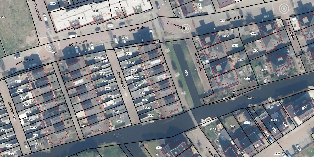 Irenestraat 66 is gelegen op kadastraal perceel AMS02A5606. Deze kadastrale aanduiding is uniek en wordt gebruikt door het Kadaster om eigendomsrechten en andere zakelijke rechten vast te leggen. Het perceel maakt onderdeel uit van de kadastrale gemeente Groot-Ammers.