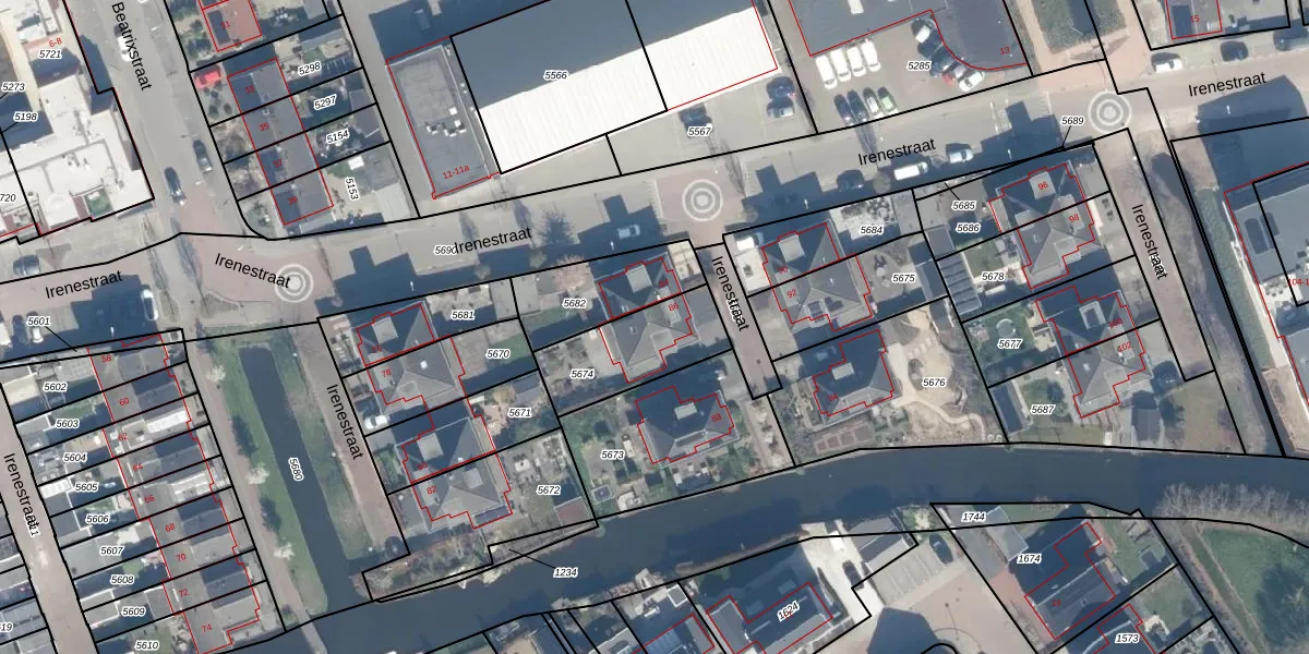 Irenestraat 86 is gelegen op kadastraal perceel AMS02A5674. Deze kadastrale aanduiding is uniek en wordt gebruikt door het Kadaster om eigendomsrechten en andere zakelijke rechten vast te leggen. Het perceel maakt onderdeel uit van de kadastrale gemeente Groot-Ammers.