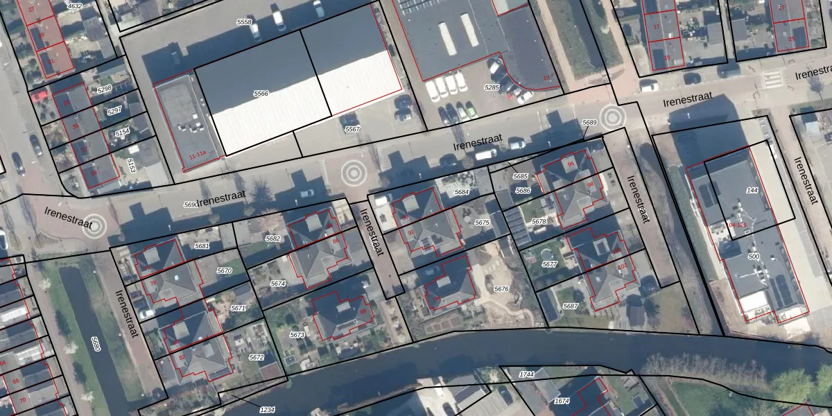 Irenestraat 90 is gelegen op kadastraal perceel AMS02A5684. Deze kadastrale aanduiding is uniek en wordt gebruikt door het Kadaster om eigendomsrechten en andere zakelijke rechten vast te leggen. Het perceel maakt onderdeel uit van de kadastrale gemeente Groot-Ammers.