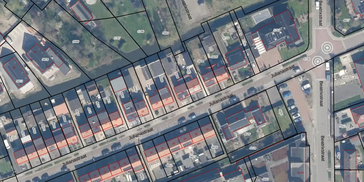 Julianastraat 29 is gelegen op kadastraal perceel AMS02A5694. Deze kadastrale aanduiding is uniek en wordt gebruikt door het Kadaster om eigendomsrechten en andere zakelijke rechten vast te leggen. Het perceel maakt onderdeel uit van de kadastrale gemeente Groot-Ammers.