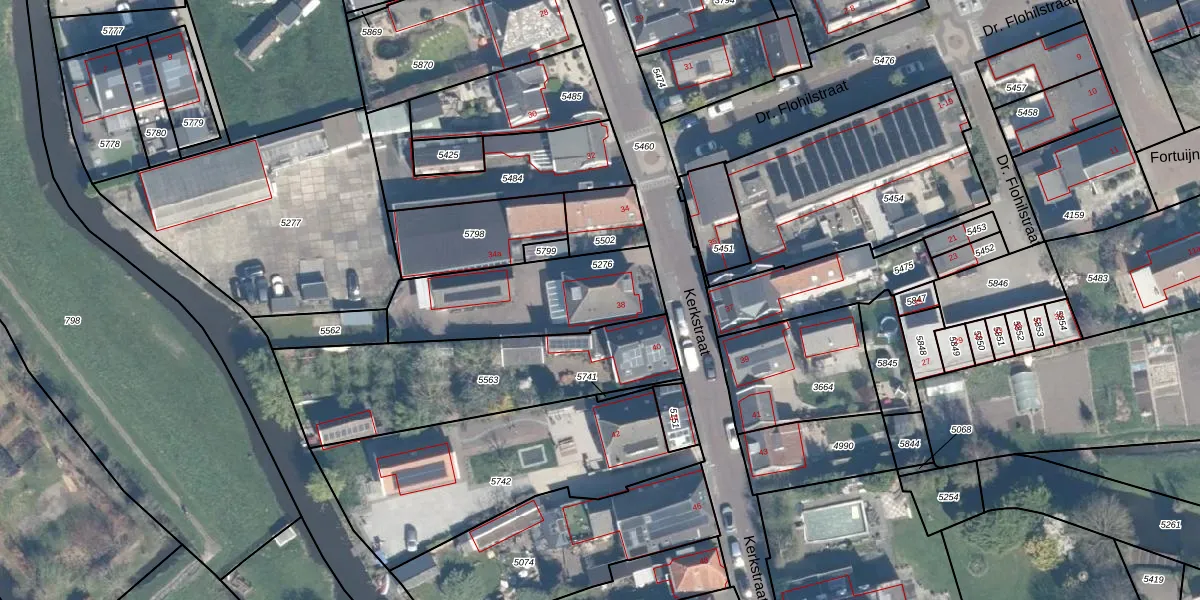 Het perceel waarop Kerkstraat 38 staat heeft een oppervlakte van 523 m². Dit is een groot perceel. De perceeloppervlakte wordt geregistreerd door het Kadaster. Gedetailleerde informatie over de maten van dit perceel kunt u vinden in het rapport Kadastrale kaart met maatvoering van Kerkstraat 38.