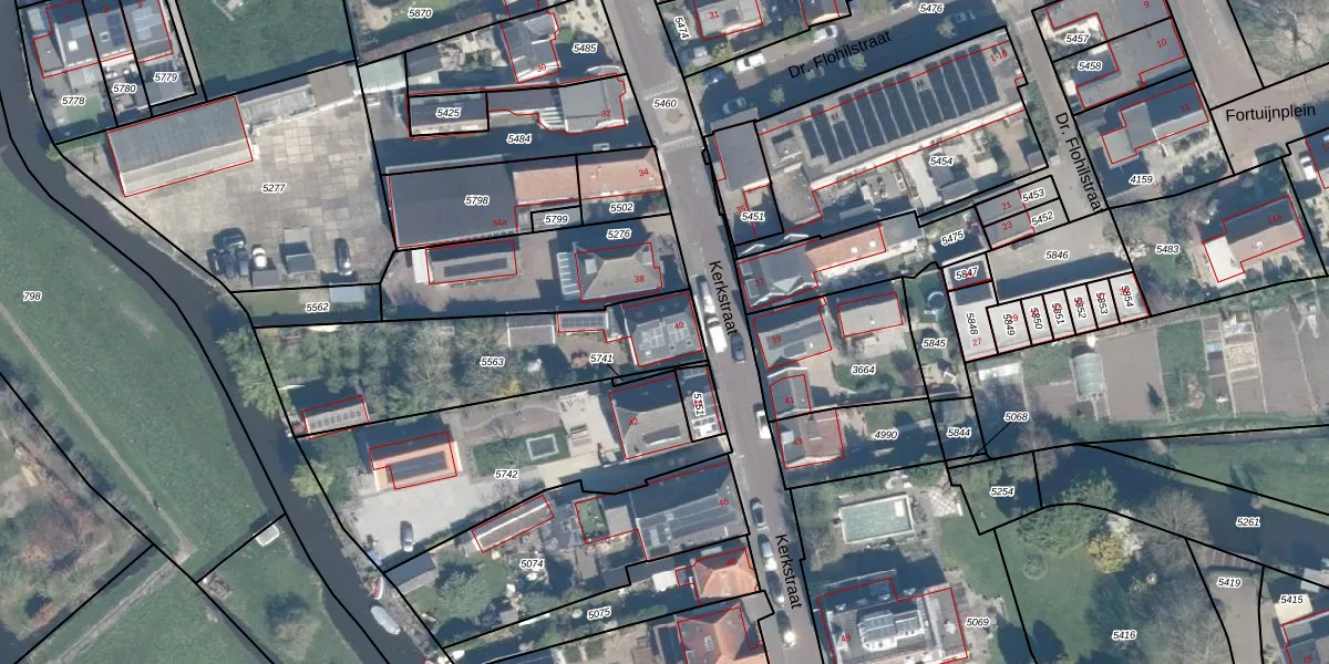 Het perceel waarop Kerkstraat 40 staat heeft een oppervlakte van 852 m². Dit is een groot perceel. De perceeloppervlakte wordt geregistreerd door het Kadaster. Gedetailleerde informatie over de maten van dit perceel kunt u vinden in het rapport Kadastrale kaart met maatvoering van Kerkstraat 40.