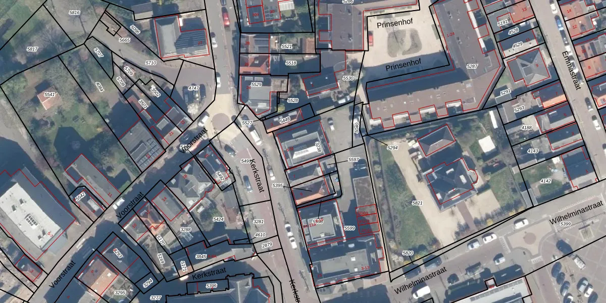 Het perceel waarop Kerkstraat 5-c staat heeft een oppervlakte van 355 m². Dit is een groot perceel. De perceeloppervlakte wordt geregistreerd door het Kadaster. Gedetailleerde informatie over de maten van dit perceel kunt u vinden in het rapport Kadastrale kaart met maatvoering van Kerkstraat 5-c.