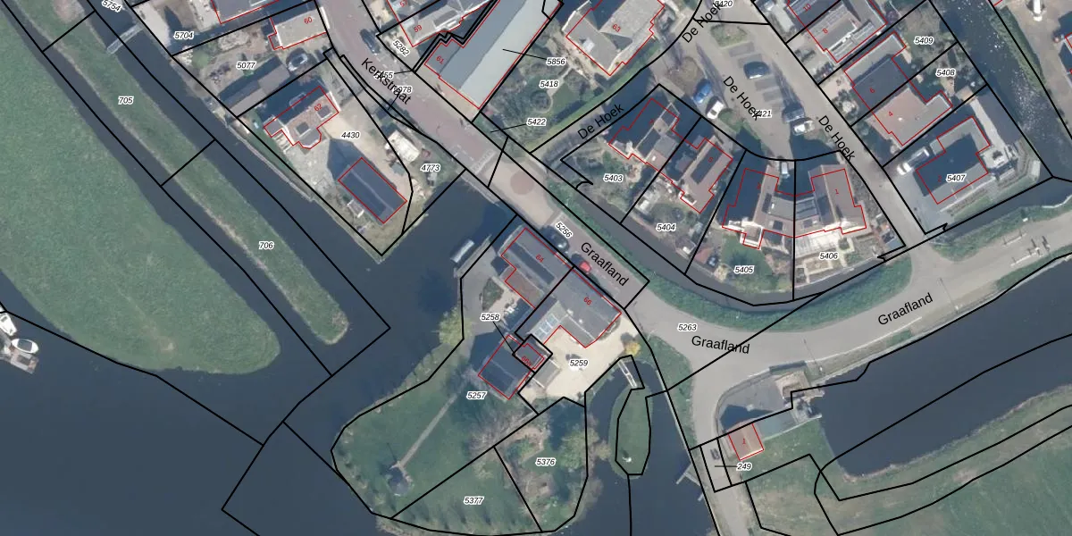 Kerkstraat 64 is gelegen op kadastraal perceel AMS02A5257. Deze kadastrale aanduiding is uniek en wordt gebruikt door het Kadaster om eigendomsrechten en andere zakelijke rechten vast te leggen. Het perceel maakt onderdeel uit van de kadastrale gemeente Groot-Ammers.