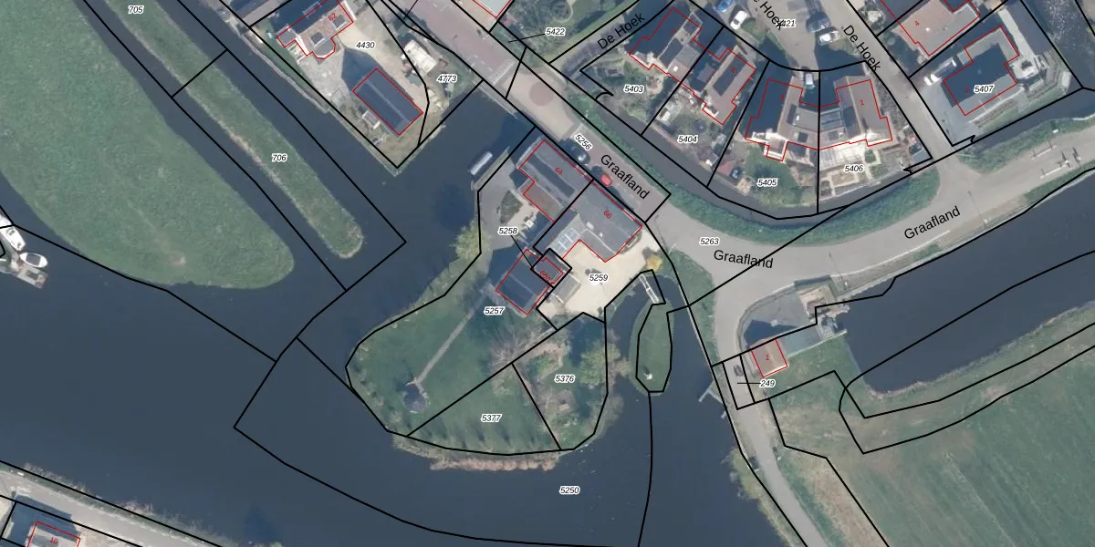 Gebruik de zoekbalk of klik op een perceel voor informatie over de adressen binnen dit perceel.