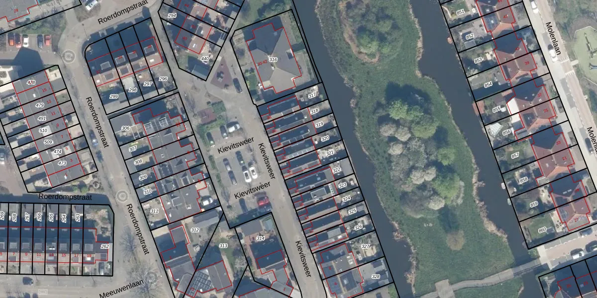 Gebruik de zoekbalk of klik op een perceel voor informatie over de adressen binnen dit perceel.
