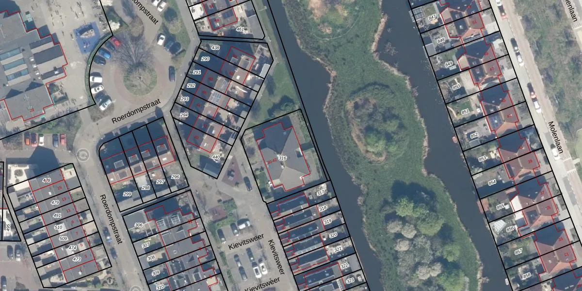 Kievitsweer 42 is gelegen op kadastraal perceel AMS02D316. Deze kadastrale aanduiding is uniek en wordt gebruikt door het Kadaster om eigendomsrechten en andere zakelijke rechten vast te leggen. Het perceel maakt onderdeel uit van de kadastrale gemeente Groot-Ammers.