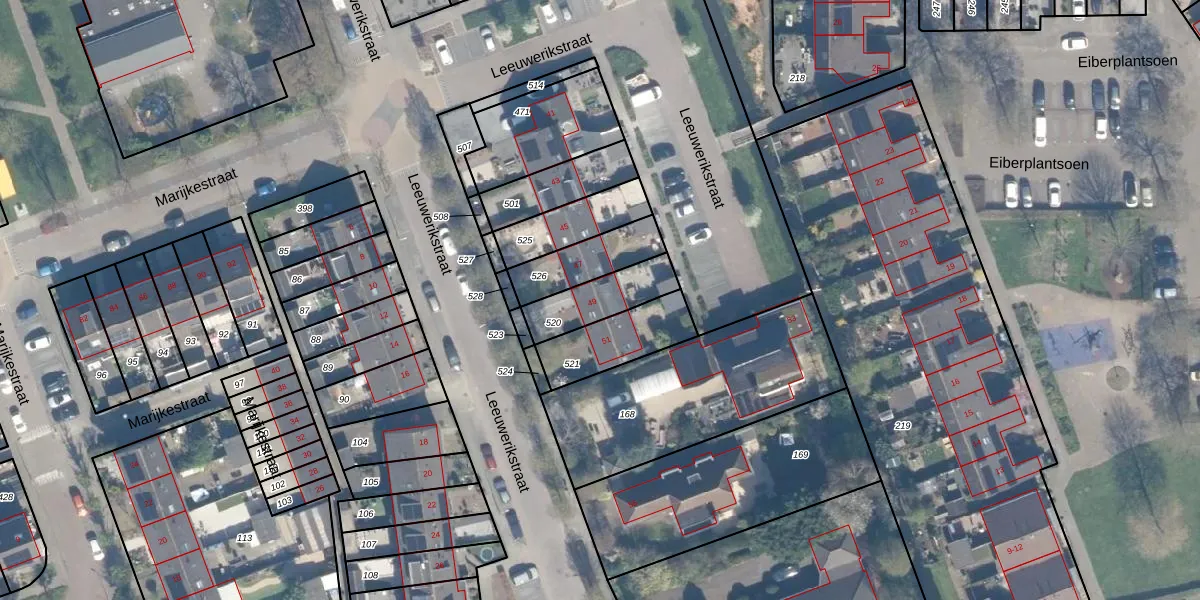 Gebruik de zoekbalk of klik op een perceel voor informatie over de adressen binnen dit perceel.