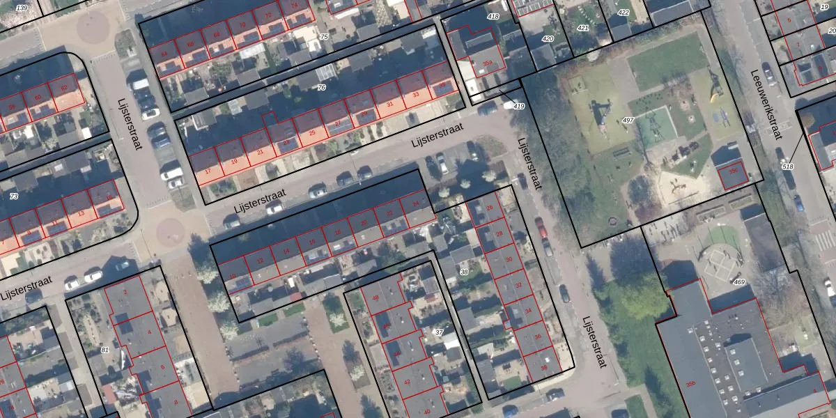 Het perceel waarop Lijsterstraat 24 staat heeft een oppervlakte van 2101 m². Dit is een zeer groot perceel. De perceeloppervlakte wordt geregistreerd door het Kadaster. Gedetailleerde informatie over de maten van dit perceel kunt u vinden in het rapport Kadastrale kaart met maatvoering van Lijsterstraat 24.