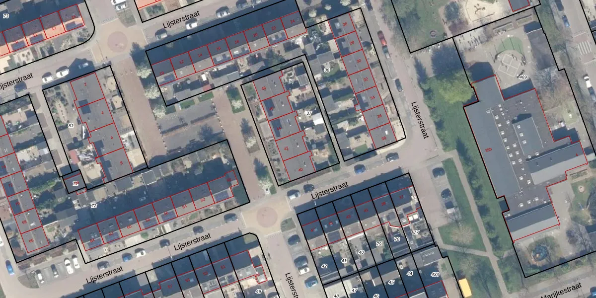 Lijsterstraat 42 is gelegen op kadastraal perceel AMS02D37. Deze kadastrale aanduiding is uniek en wordt gebruikt door het Kadaster om eigendomsrechten en andere zakelijke rechten vast te leggen. Het perceel maakt onderdeel uit van de kadastrale gemeente Groot-Ammers.