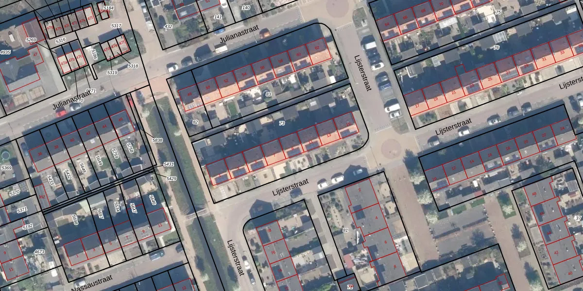 Het perceel waarop Lijsterstraat 9 staat heeft een oppervlakte van 1298 m². Dit is een zeer groot perceel. De perceeloppervlakte wordt geregistreerd door het Kadaster. Gedetailleerde informatie over de maten van dit perceel kunt u vinden in het rapport Kadastrale kaart met maatvoering van Lijsterstraat 9.