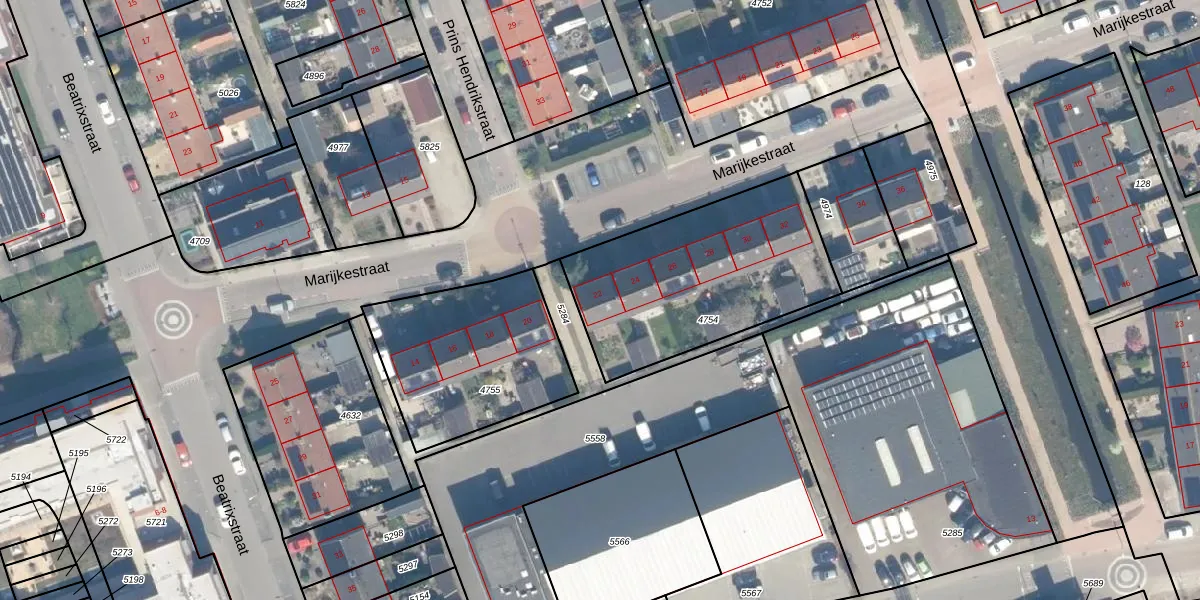 Het perceel waarop Marijkestraat 22 staat heeft een oppervlakte van 910 m². Dit is een groot perceel. De perceeloppervlakte wordt geregistreerd door het Kadaster. Gedetailleerde informatie over de maten van dit perceel kunt u vinden in het rapport Kadastrale kaart met maatvoering van Marijkestraat 22.