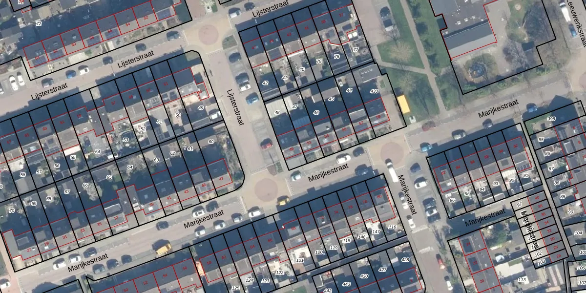 Gebruik de zoekbalk of klik op een perceel voor informatie over de adressen binnen dit perceel.
