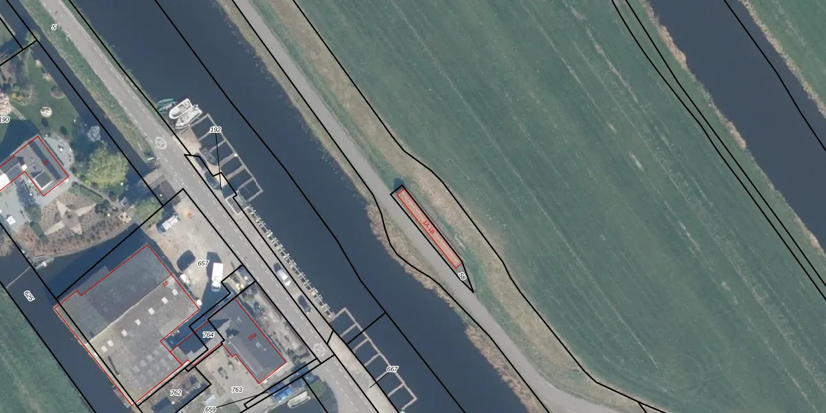 Het adres ligt op het perceel AMS02-F-58, dat zich in de kadastrale gemeente Groot-Ammers bevindt. Het perceel is kleiner dan gemiddeld in Groot-Ammers. Het perceel is 84 m² groot, terwijl het gemiddelde ligt op 5921 m². De grootste perceeloppervlakte in de kadastrale gemeente is 45,3 ha. De kleinste oppervlakte bedraagt 0 m². Er zijn 2 adressen aanwezig op het perceel. De huidige grenzen van het perceel zijn digitaal in de Basisregistratie Kadaster (BRK) geregistreerd op 20-07-2000.