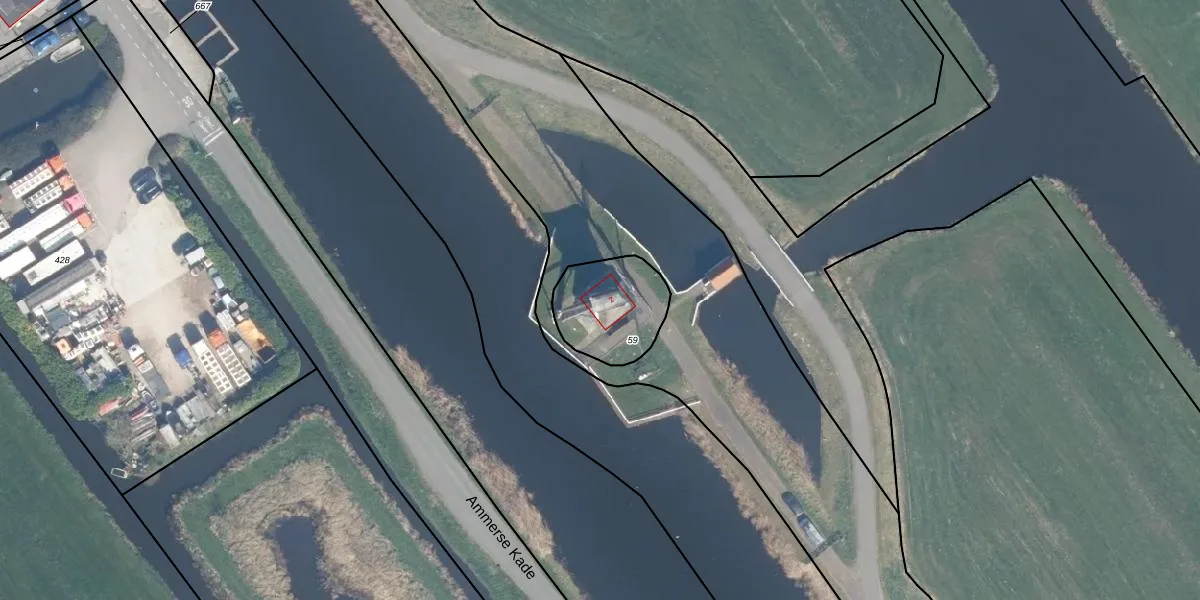 Molenkade 2 is gelegen op kadastraal perceel AMS02F59. Deze kadastrale aanduiding is uniek en wordt gebruikt door het Kadaster om eigendomsrechten en andere zakelijke rechten vast te leggen. Het perceel maakt onderdeel uit van de kadastrale gemeente Groot-Ammers.