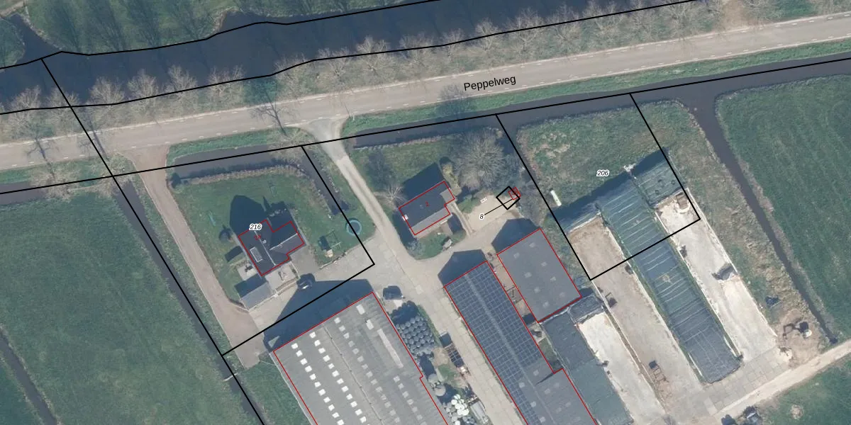 Het perceel waarop Peppelweg 2 staat heeft een oppervlakte van 28,2 ha. Dit is een zeer groot perceel. De perceeloppervlakte wordt geregistreerd door het Kadaster. Gedetailleerde informatie over de maten van dit perceel kunt u vinden in het rapport Kadastrale kaart met maatvoering van Peppelweg 2.