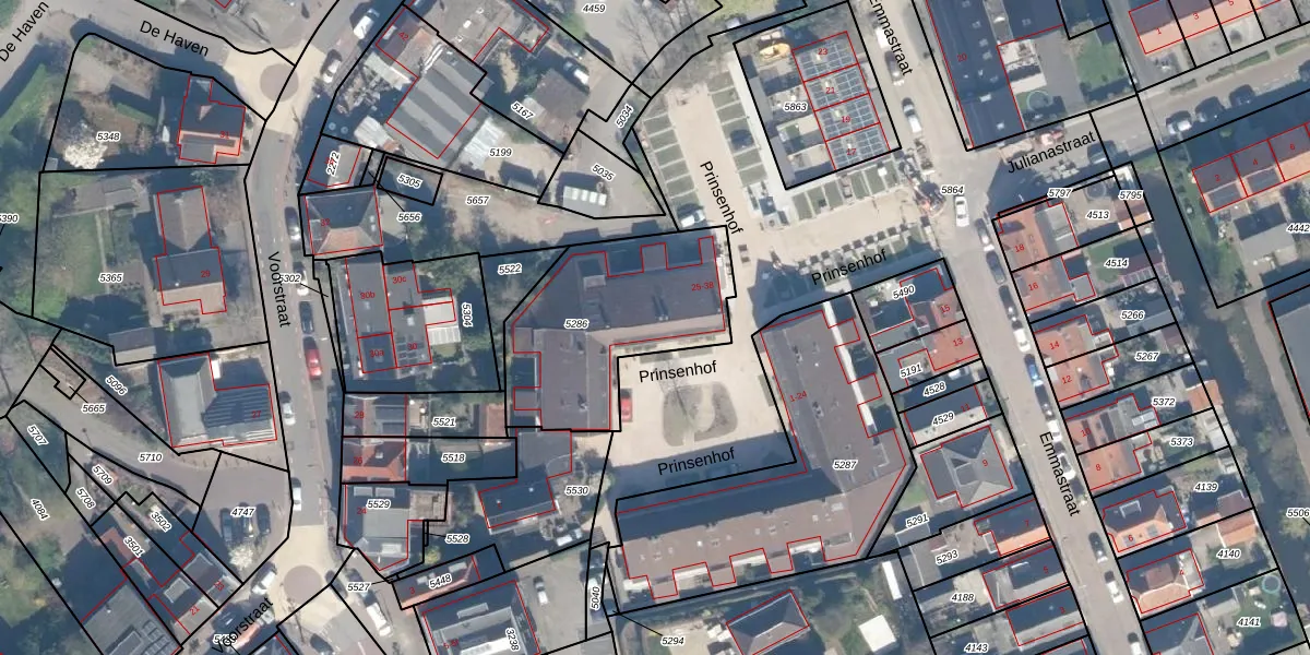 Het perceel waarop Prinsenhof 34 staat heeft een oppervlakte van 739 m². Dit is een groot perceel. De perceeloppervlakte wordt geregistreerd door het Kadaster. Gedetailleerde informatie over de maten van dit perceel kunt u vinden in het rapport Kadastrale kaart met maatvoering van Prinsenhof 34.