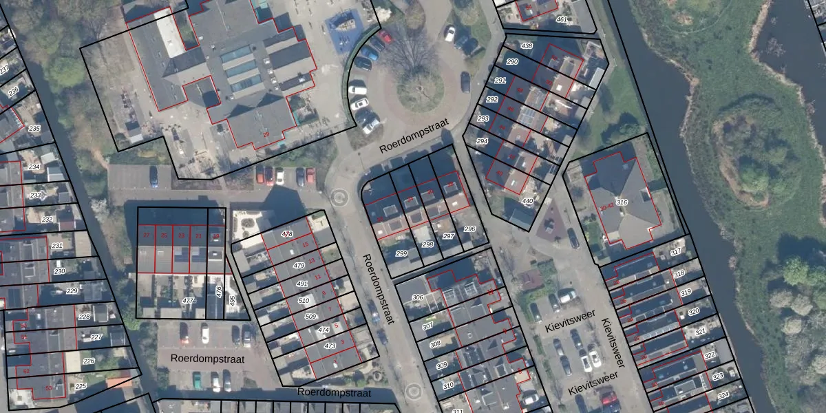 Gebruik de zoekbalk of klik op een perceel voor informatie over de adressen binnen dit perceel.