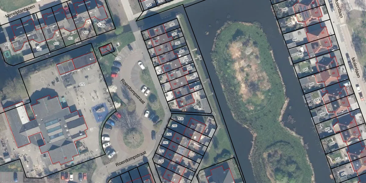 Het perceel waarop Roerdompstraat 56 staat heeft een oppervlakte van 107 m². Dit is een middelgroot perceel. De perceeloppervlakte wordt geregistreerd door het Kadaster. Gedetailleerde informatie over de maten van dit perceel kunt u vinden in het rapport Kadastrale kaart met maatvoering van Roerdompstraat 56.