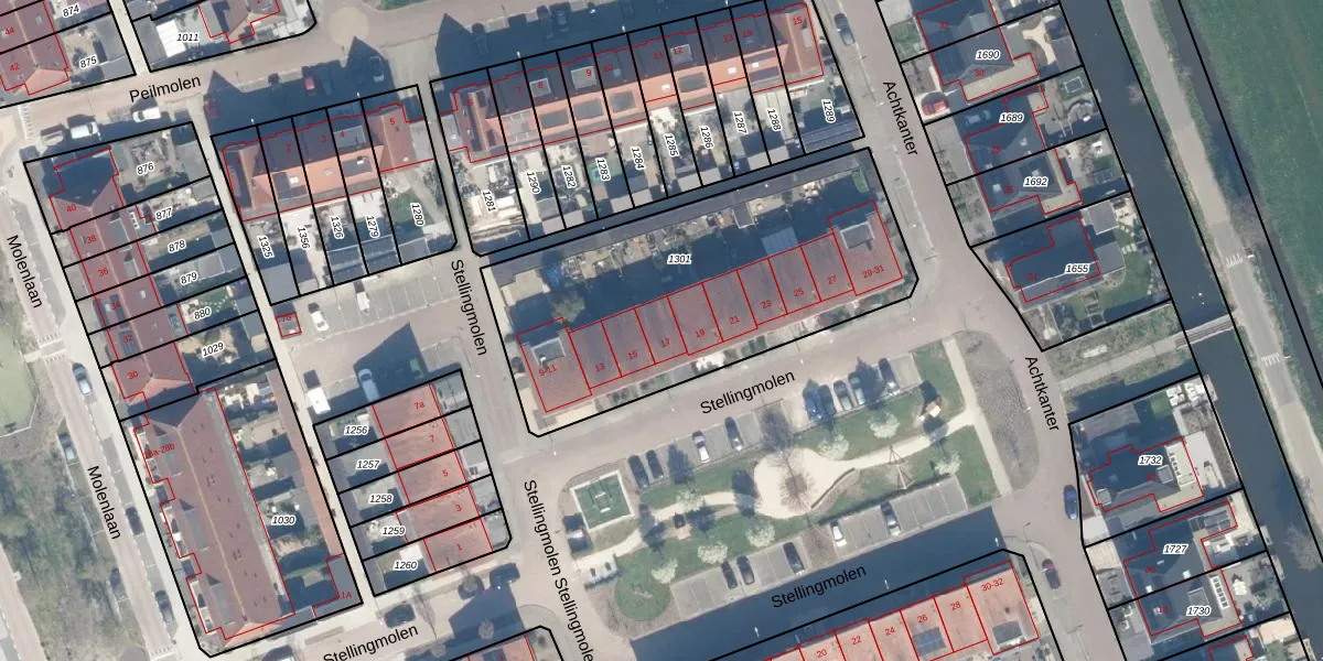 Het perceel waarop Stellingmolen 17 staat heeft een oppervlakte van 1564 m². Dit is een zeer groot perceel. De perceeloppervlakte wordt geregistreerd door het Kadaster. Gedetailleerde informatie over de maten van dit perceel kunt u vinden in het rapport Kadastrale kaart met maatvoering van Stellingmolen 17.