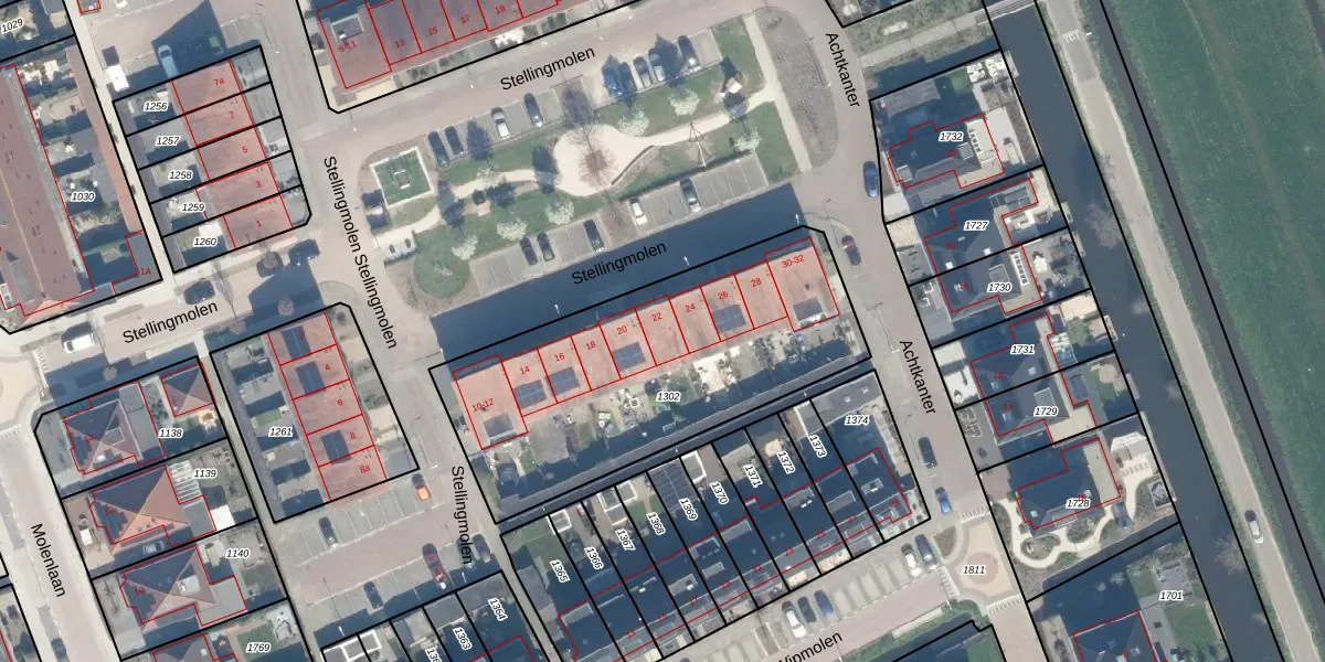 Het perceel waarop Stellingmolen 22 staat heeft een oppervlakte van 1487 m². Dit is een zeer groot perceel. De perceeloppervlakte wordt geregistreerd door het Kadaster. Gedetailleerde informatie over de maten van dit perceel kunt u vinden in het rapport Kadastrale kaart met maatvoering van Stellingmolen 22.