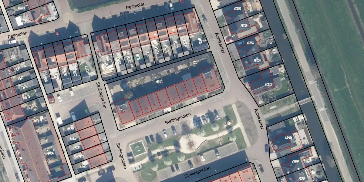 Het perceel waarop Stellingmolen 23 staat heeft een oppervlakte van 1564 m². Dit is een zeer groot perceel. De perceeloppervlakte wordt geregistreerd door het Kadaster. Gedetailleerde informatie over de maten van dit perceel kunt u vinden in het rapport Kadastrale kaart met maatvoering van Stellingmolen 23.
