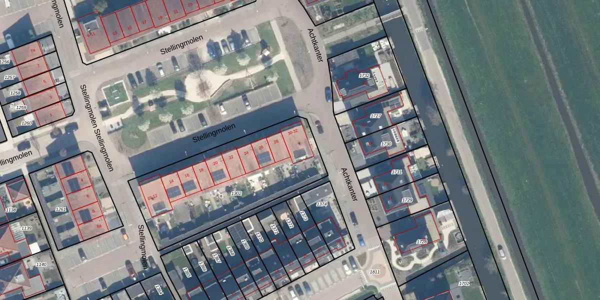 Stellingmolen 32 is gelegen op kadastraal perceel AMS02E1302. Deze kadastrale aanduiding is uniek en wordt gebruikt door het Kadaster om eigendomsrechten en andere zakelijke rechten vast te leggen. Het perceel maakt onderdeel uit van de kadastrale gemeente Groot-Ammers.