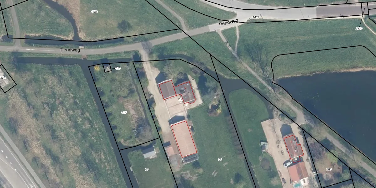 Tiendweg 1 is gelegen op kadastraal perceel AMS02E75. Deze kadastrale aanduiding is uniek en wordt gebruikt door het Kadaster om eigendomsrechten en andere zakelijke rechten vast te leggen. Het perceel maakt onderdeel uit van de kadastrale gemeente Groot-Ammers.