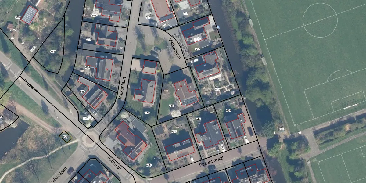 Het perceel waarop Valkenlaan 22 staat heeft een oppervlakte van 515 m². Dit is een groot perceel. De perceeloppervlakte wordt geregistreerd door het Kadaster. Gedetailleerde informatie over de maten van dit perceel kunt u vinden in het rapport Kadastrale kaart met maatvoering van Valkenlaan 22.