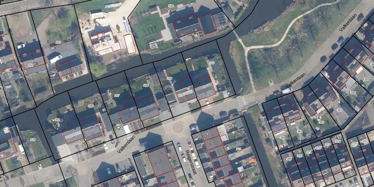 Het perceel waarop Valkenlaan 9 staat heeft een oppervlakte van 505 m². Dit is een groot perceel. De perceeloppervlakte wordt geregistreerd door het Kadaster. Gedetailleerde informatie over de maten van dit perceel kunt u vinden in het rapport Kadastrale kaart met maatvoering van Valkenlaan 9.