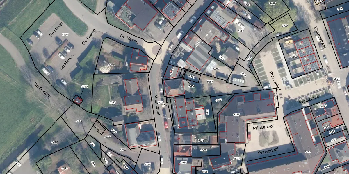 Gebruik de zoekbalk of klik op een perceel voor informatie over de adressen binnen dit perceel.