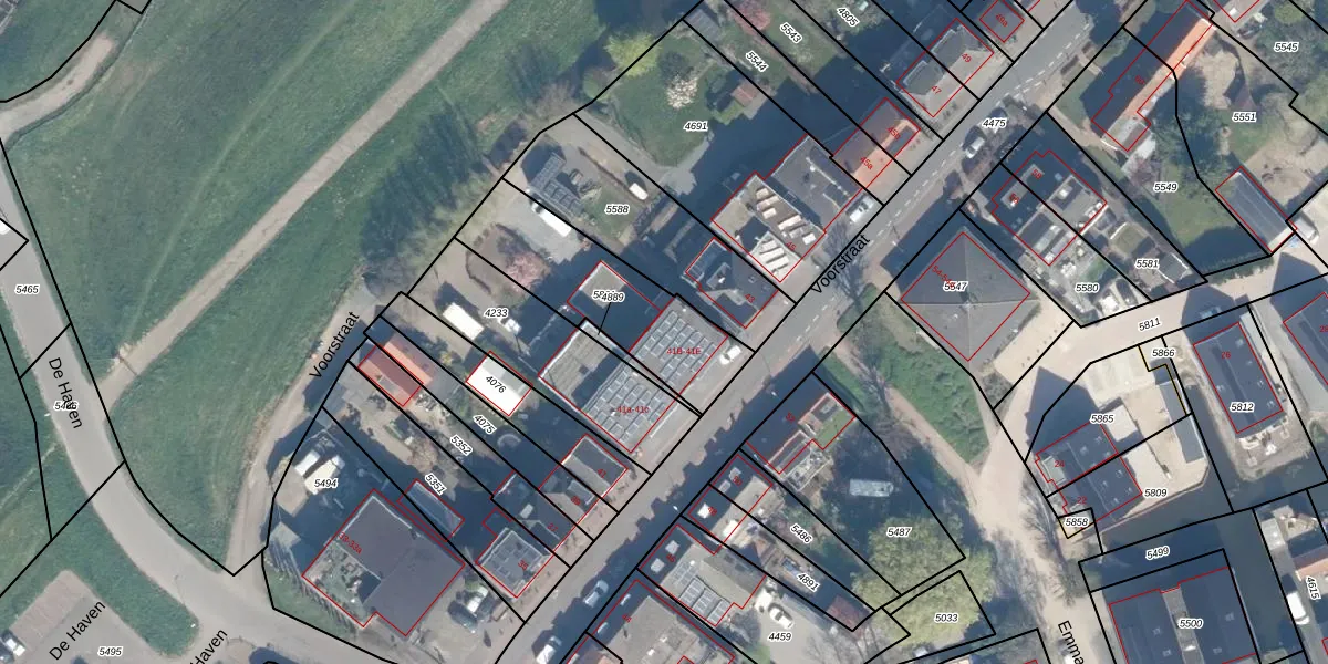 Het perceel waarop Voorstraat 41-B staat heeft een oppervlakte van 540 m². Dit is een groot perceel. De perceeloppervlakte wordt geregistreerd door het Kadaster. Gedetailleerde informatie over de maten van dit perceel kunt u vinden in het rapport Kadastrale kaart met maatvoering van Voorstraat 41-B.