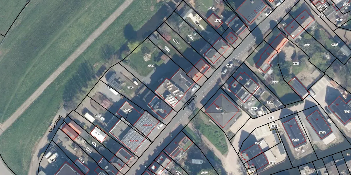 Het perceel waarop Voorstraat 45 staat heeft een oppervlakte van 880 m². Dit is een groot perceel. De perceeloppervlakte wordt geregistreerd door het Kadaster. Gedetailleerde informatie over de maten van dit perceel kunt u vinden in het rapport Kadastrale kaart met maatvoering van Voorstraat 45.