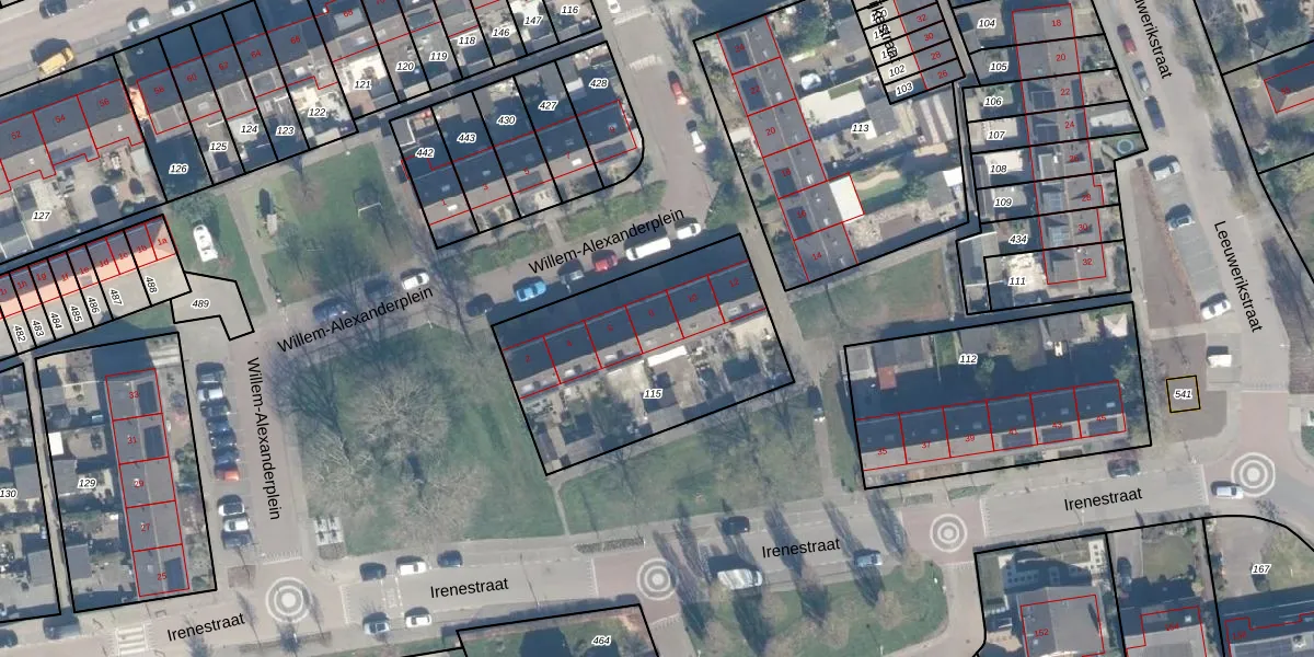 Het perceel waarop Willem-Alexanderplein 8 staat heeft een oppervlakte van 975 m². Dit is een groot perceel. De perceeloppervlakte wordt geregistreerd door het Kadaster. Gedetailleerde informatie over de maten van dit perceel kunt u vinden in het rapport Kadastrale kaart met maatvoering van Willem-Alexanderplein 8.