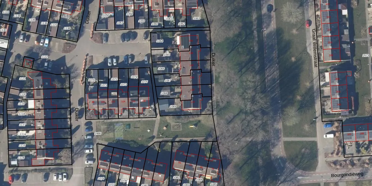 Gebruik de zoekbalk of klik op een perceel voor informatie over de adressen binnen dit perceel.