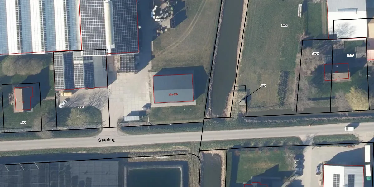 Het perceel waarop Geerling 26-d staat heeft een oppervlakte van 2,9 ha. Dit is een zeer groot perceel. De perceeloppervlakte wordt geregistreerd door het Kadaster. Gedetailleerde informatie over de maten van dit perceel kunt u vinden in het rapport Kadastrale kaart met maatvoering van Geerling 26-d.