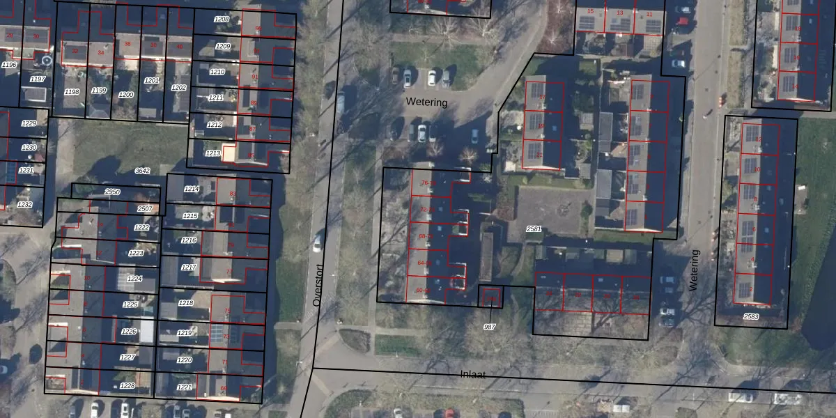 Het perceel waarop Overstort 72 staat heeft een oppervlakte van 3950 m². Dit is een zeer groot perceel. De perceeloppervlakte wordt geregistreerd door het Kadaster. Gedetailleerde informatie over de maten van dit perceel kunt u vinden in het rapport Kadastrale kaart met maatvoering van Overstort 72.