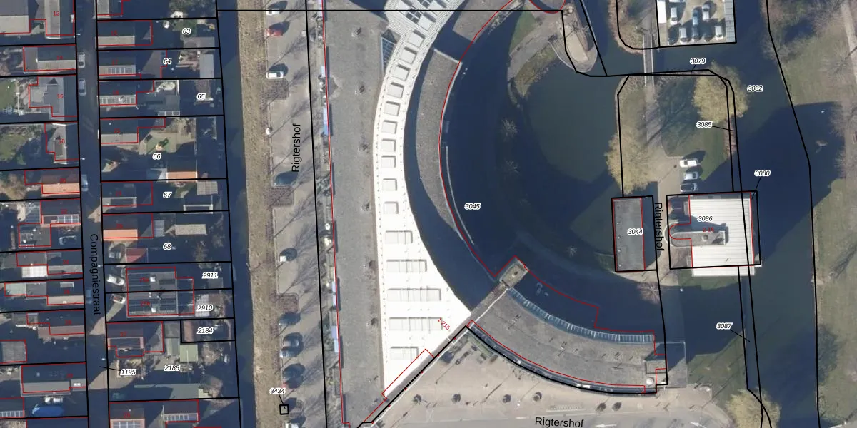 Het perceel waarop Rigtershof 77 staat heeft een oppervlakte van 6240 m². Dit is een zeer groot perceel. De perceeloppervlakte wordt geregistreerd door het Kadaster. Gedetailleerde informatie over de maten van dit perceel kunt u vinden in het rapport Kadastrale kaart met maatvoering van Rigtershof 77.