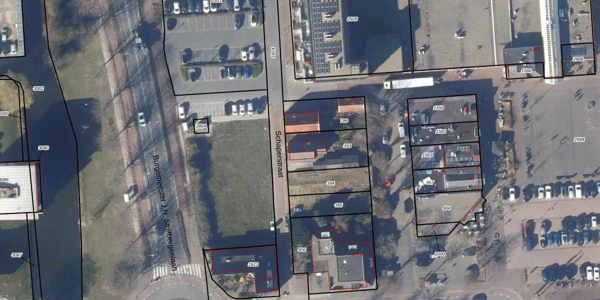 Gebruik de zoekbalk of klik op een perceel voor informatie over de adressen binnen dit perceel.