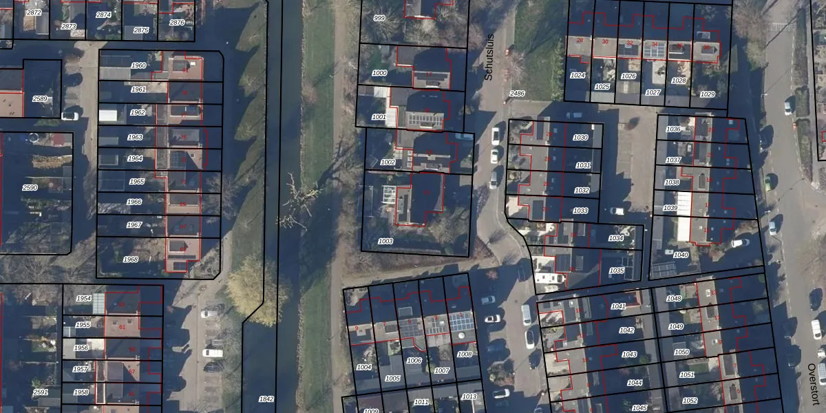 Het perceel waarop Schutsluis 11 staat heeft een oppervlakte van 519 m². Dit is een groot perceel. De perceeloppervlakte wordt geregistreerd door het Kadaster. Gedetailleerde informatie over de maten van dit perceel kunt u vinden in het rapport Kadastrale kaart met maatvoering van Schutsluis 11.