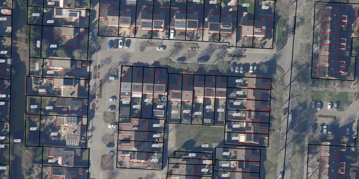 Gebruik de zoekbalk of klik op een perceel voor informatie over de adressen binnen dit perceel.