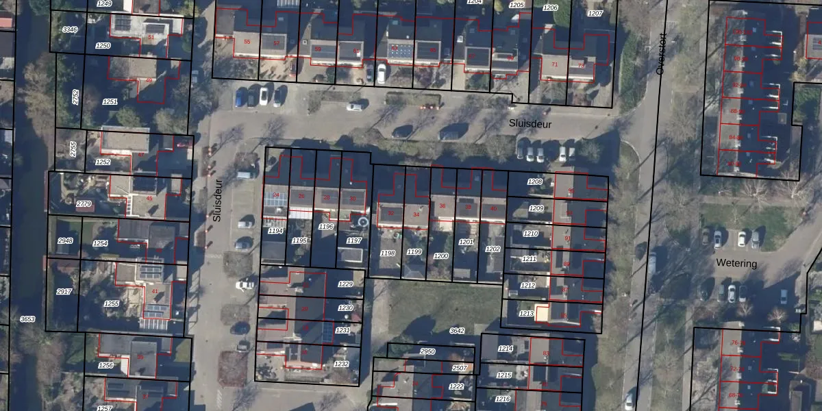 Gebruik de zoekbalk of klik op een perceel voor informatie over de adressen binnen dit perceel.