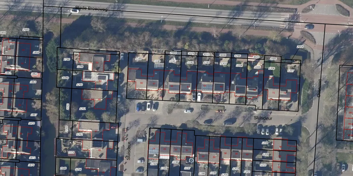 Het perceel waarop Sluisdeur 59 staat heeft een oppervlakte van 250 m². Dit is een middelgroot perceel. De perceeloppervlakte wordt geregistreerd door het Kadaster. Gedetailleerde informatie over de maten van dit perceel kunt u vinden in het rapport Kadastrale kaart met maatvoering van Sluisdeur 59.