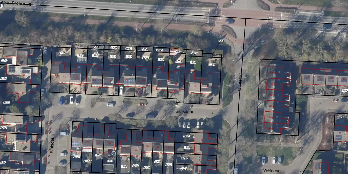 Het perceel waarop Sluisdeur 69 staat heeft een oppervlakte van 258 m². Dit is een middelgroot perceel. De perceeloppervlakte wordt geregistreerd door het Kadaster. Gedetailleerde informatie over de maten van dit perceel kunt u vinden in het rapport Kadastrale kaart met maatvoering van Sluisdeur 69.