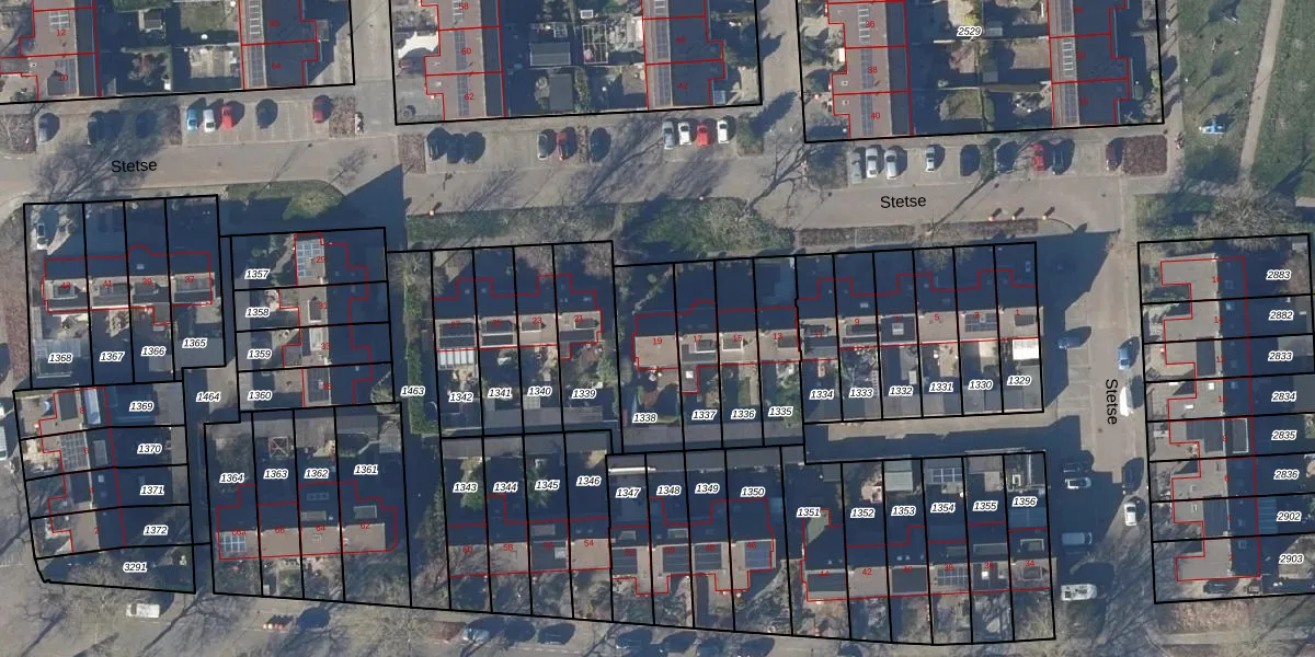 Het perceel waarop Stetse 19 staat heeft een oppervlakte van 258 m². Dit is een middelgroot perceel. De perceeloppervlakte wordt geregistreerd door het Kadaster. Gedetailleerde informatie over de maten van dit perceel kunt u vinden in het rapport Kadastrale kaart met maatvoering van Stetse 19.