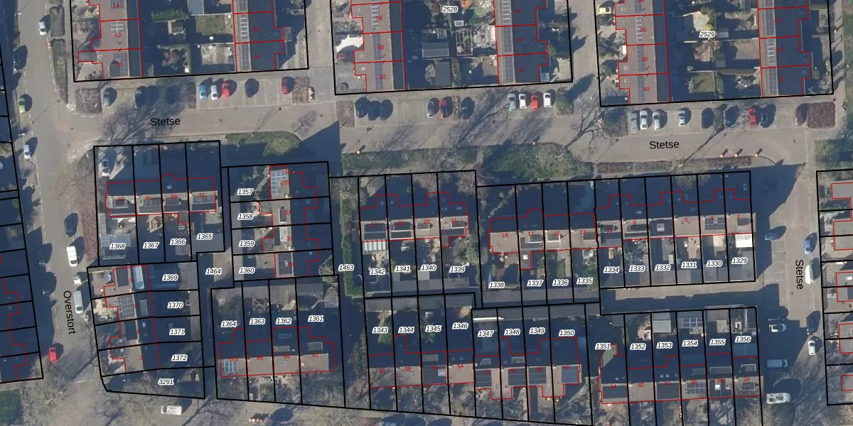 Het perceel waarop Stetse 23 staat heeft een oppervlakte van 171 m². Dit is een middelgroot perceel. De perceeloppervlakte wordt geregistreerd door het Kadaster. Gedetailleerde informatie over de maten van dit perceel kunt u vinden in het rapport Kadastrale kaart met maatvoering van Stetse 23.