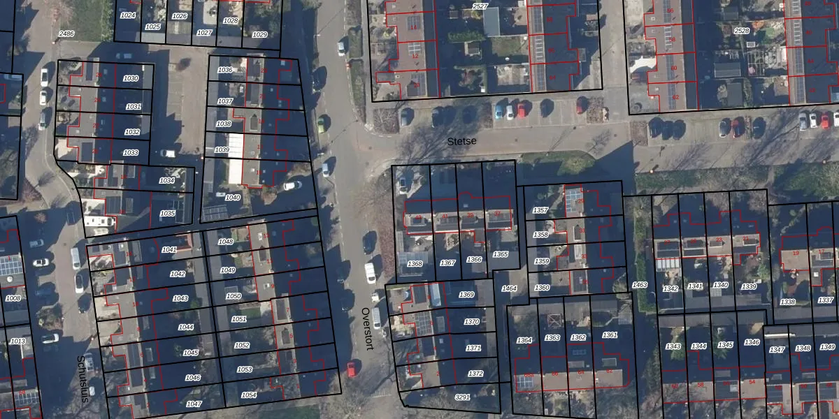 Gebruik de zoekbalk of klik op een perceel voor informatie over de adressen binnen dit perceel.