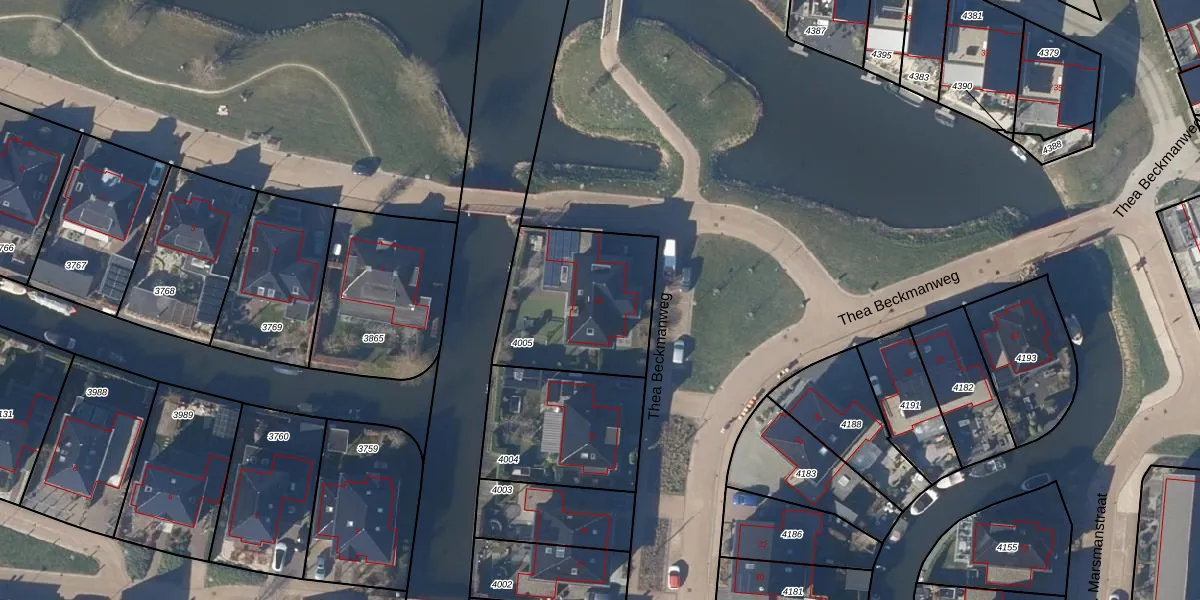 Thea Beckmanweg 33 is gelegen op kadastraal perceel SDE02B4005. Deze kadastrale aanduiding is uniek en wordt gebruikt door het Kadaster om eigendomsrechten en andere zakelijke rechten vast te leggen. Het perceel maakt onderdeel uit van de kadastrale gemeente Stede Broec.